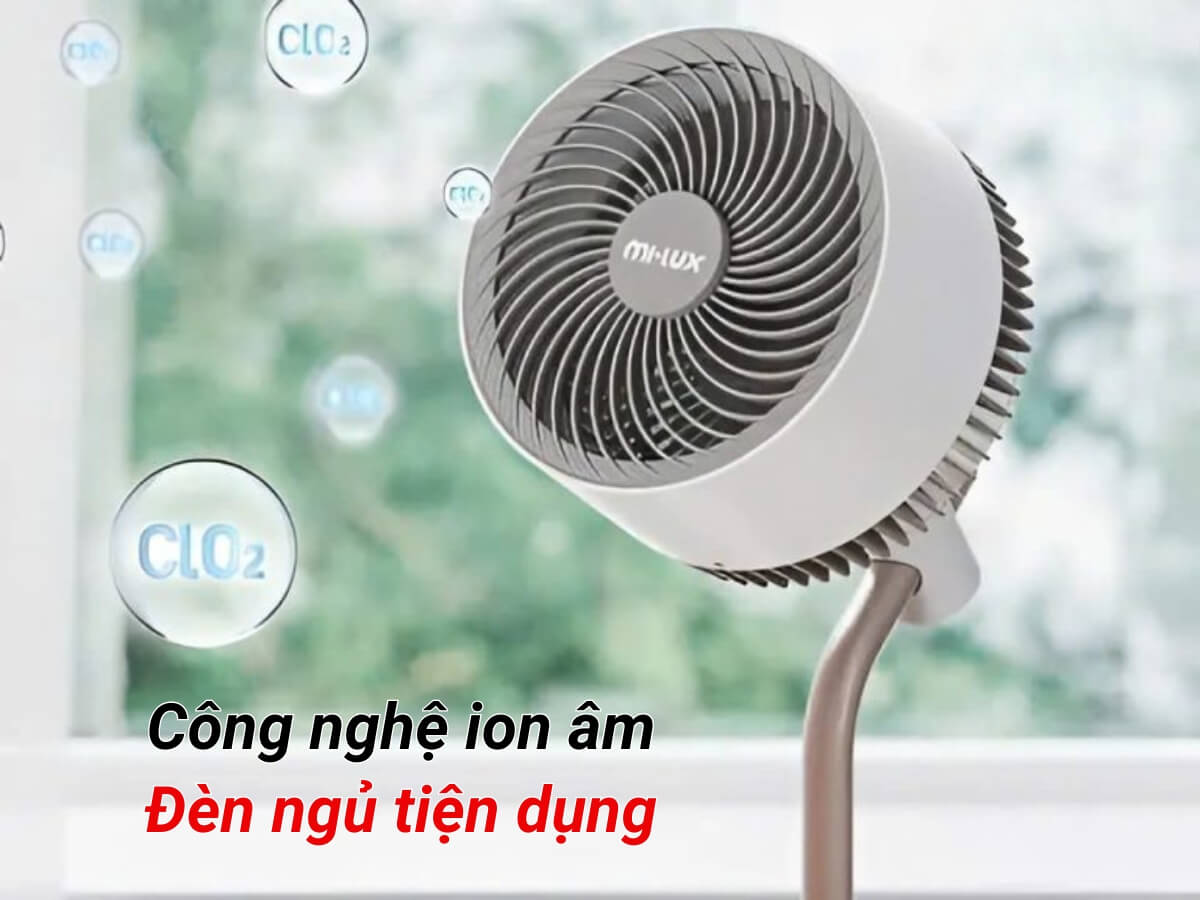 Quạt đối lưu Mi-Lux F6 Pro còn có công nghệ ion âm hiện đại giúp lọc không khí, hạn chế bụi bẩn, vi khuẩn, mang đến bầu không khí trong lành và an toàn hơn cho gia đình.