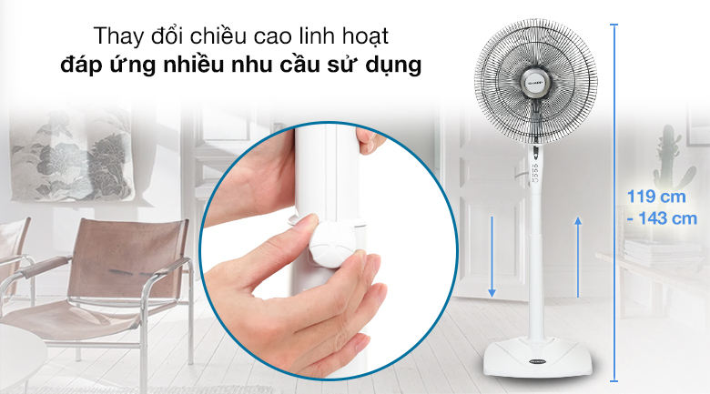 Thay đổi chiều cao linh hoạt giúp quạt tăng khả năng làm mát trên diện tích rộng