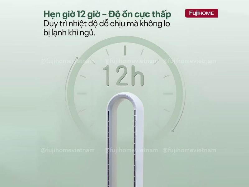 Tính năng hẹn giờ lên đến 12 tiếng là một điểm cộng lớn của quạt Fujihome BF308DC. Người dùng có thể cài đặt thời gian hoạt động của quạt mà không cần phải lo lắng về việc quạt chạy quá lâu.