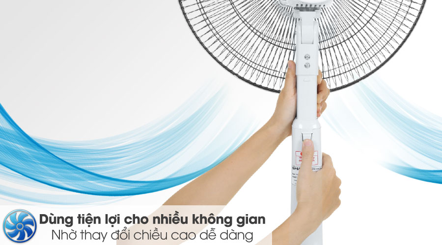 Dễ dàng điều chỉnh chiều cao thân quạt để sử dụng linh hoạt theo không gian và nhu cầu