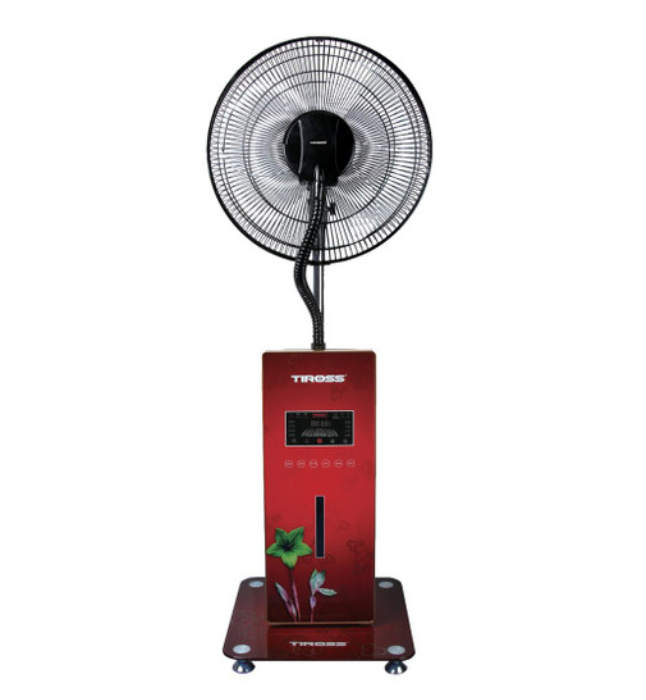 Quạt phun sương Tiross thiết kế 3 cánh quạt bằng nhựa trong suốt, tạo làn gió mát. Phần lồng quạt phía trước có gắn thêm dây dẫn hơi nước để khi sử dụng chức năng phun sương, hơi nước sẽ bơm từ bình chứa lên tạo thành làn sương mát đẩy ra bên ngoài không gian.