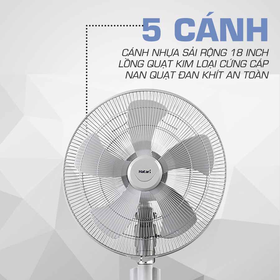 Quạt sàn Hatari IS18M1 gây ấn tượng với thiết kế chân quỳ đặc biệt, giúp quạt luôn đứng vững trên mọi mặt phẳng mà không lo rung lắc hay nghiêng đổ trong quá trình hoạt động. Lồng quạt và thân quạt được làm từ kim loại sơn tĩnh điện màu trắng, không chỉ bền bỉ theo thời gian mà còn mang đến vẻ ngoài thanh lịch, dễ dàng hài hòa với nhiều phong cách nội thất khác nhau.
