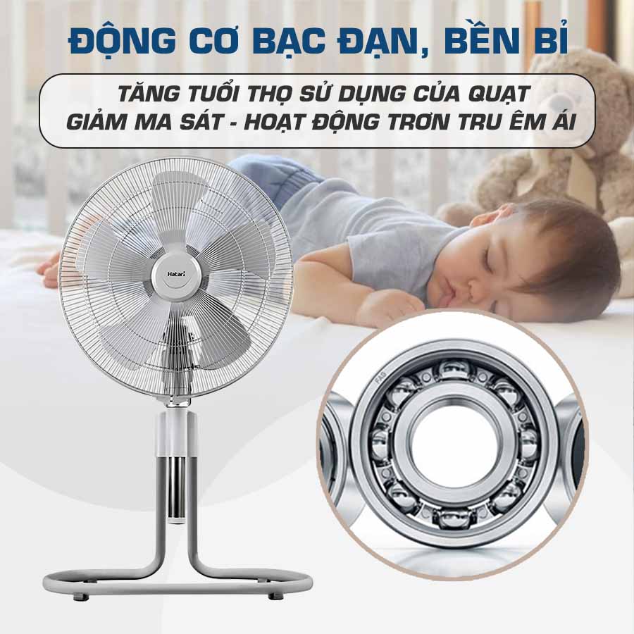 Quạt sàn công nghiệp Hatari IS18M1 được trang bị động cơ bạc thau cao cấp, nổi bật với khả năng vận hành mạnh mẽ nhưng cực êm ái. Nhờ công nghệ động cơ tiên tiến này, quạt hoạt động ổn định trong thời gian dài mà không gây ra tiếng ồn lớn, mang lại cảm giác dễ chịu và yên tĩnh cho không gian sống. Dù sử dụng trong phòng ngủ, phòng khách hay nơi làm việc, Hatari IS18M1 vẫn đảm bảo luồng gió mát liên tục, không làm gián đoạn giấc ngủ hay ảnh hưởng đến sự tập trung của bạn.
