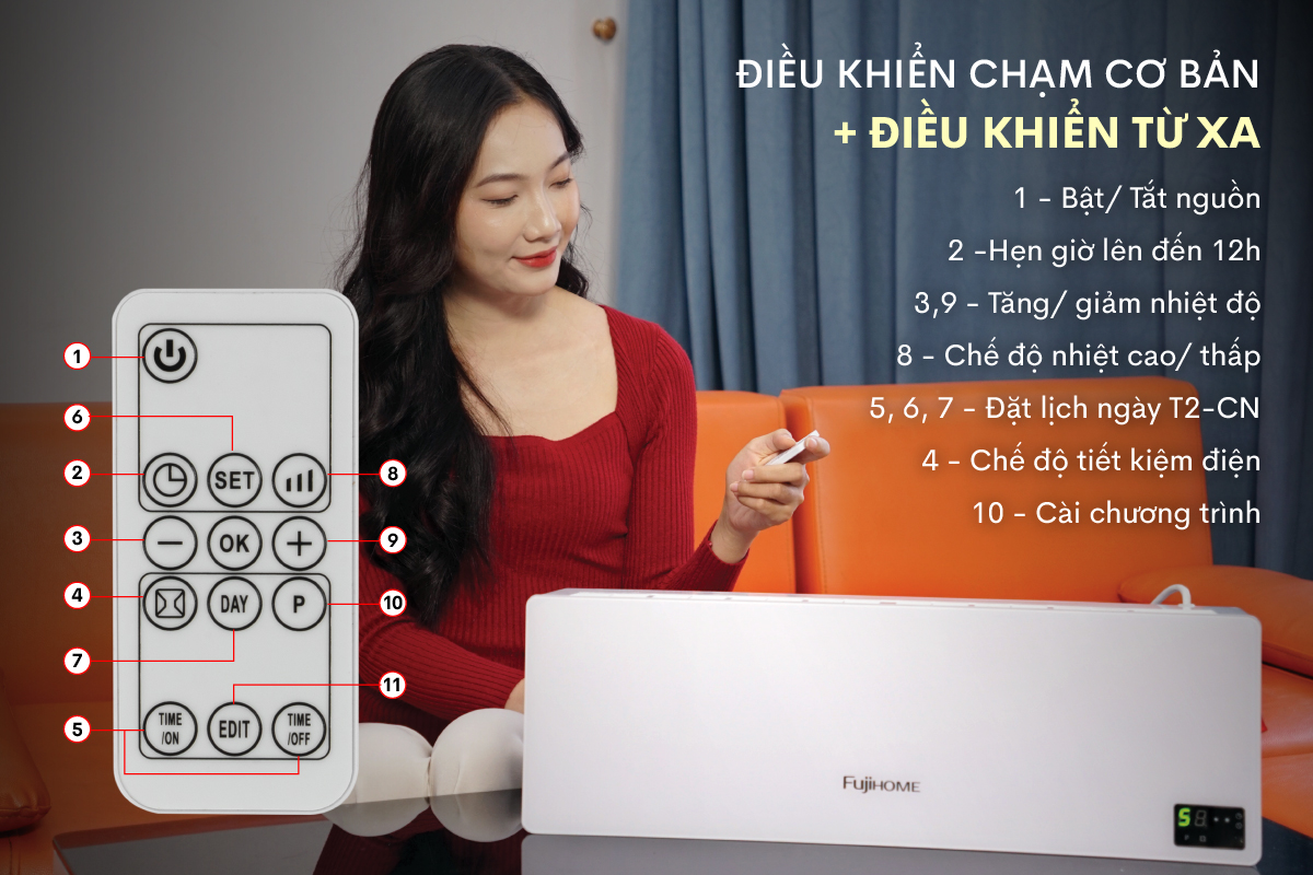 – Ngoài chức năng sưởi ấm sản phẩm còn có khả năng làm khô không khí trong những ngày nồm ẩm.