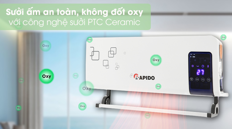 Sưởi ấm an toàn, tăng nhiệt độ phòng tối ưu, không gây sốc nhiệt, không đốt oxy, gây khô da qua công nghệ sưởi PTC Ceramic