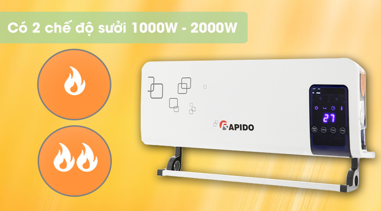 Có 2 chế độ sưởi tương ứng với 2 mức công suất là 1000W – 2000W