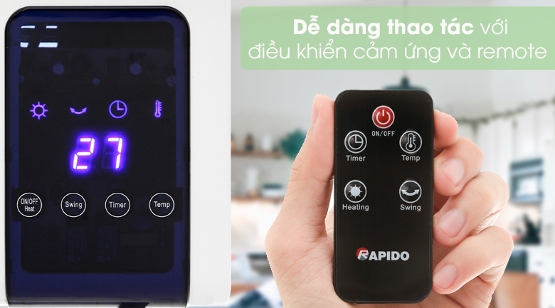 Quạt sưởi gốm Rapido RCH2000-D đến từ thương hiệu Rapido nổi tiếng của nước Đức, sản xuất tại Trung Quốc, là thiết bị sưởi ấm – làm mát an toàn, tiện dụng phù hợp cho mọi gia đình.