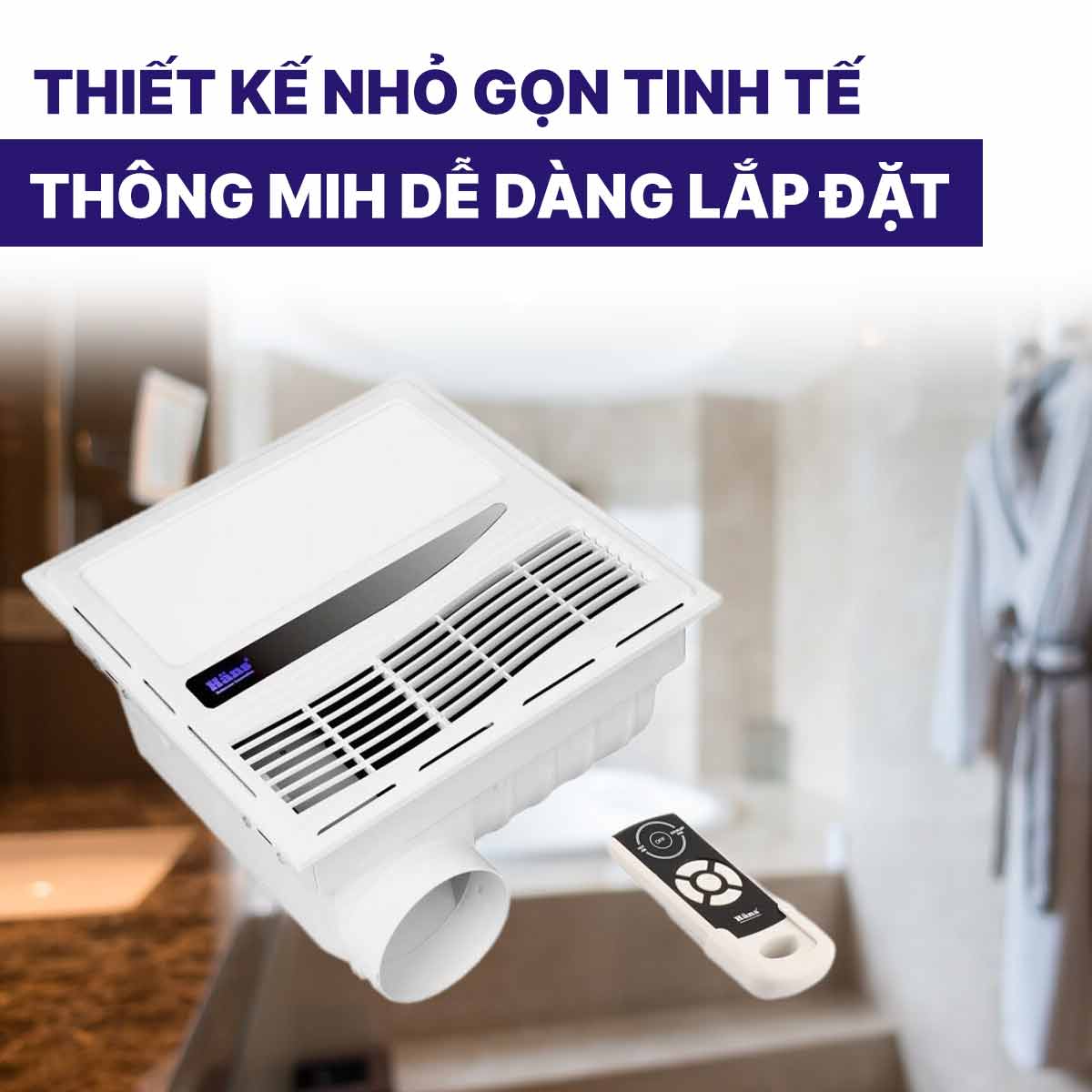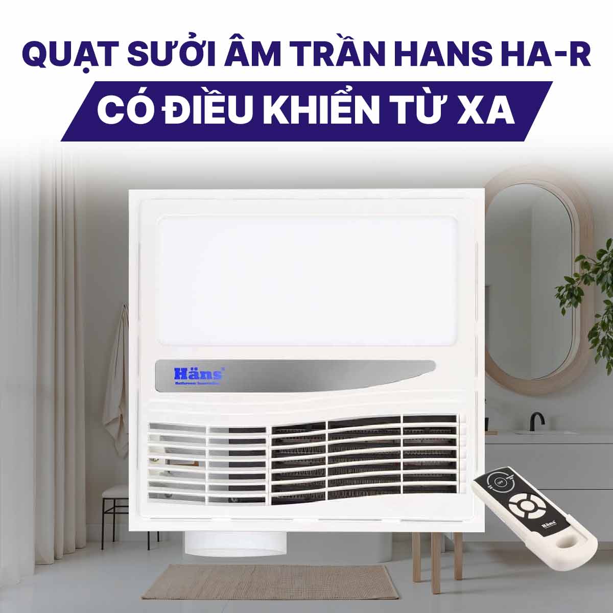 Ưu điểm cuối cùng của Quạt sưởi âm trần Hans HA-R đó là sở hữu điều khiển từ xa vô cùng tiện lợi. Chỉ cần ngồi trong bồn bạn đã có thể thao tác bật tắt, bật thông gió một cách tiện lợi mà không cần di chuyển. Hoặc trong trường hợp quạt lắp đặt trên cao thì đây là thiết bị vô cùng cần thiết khi sử dụng.