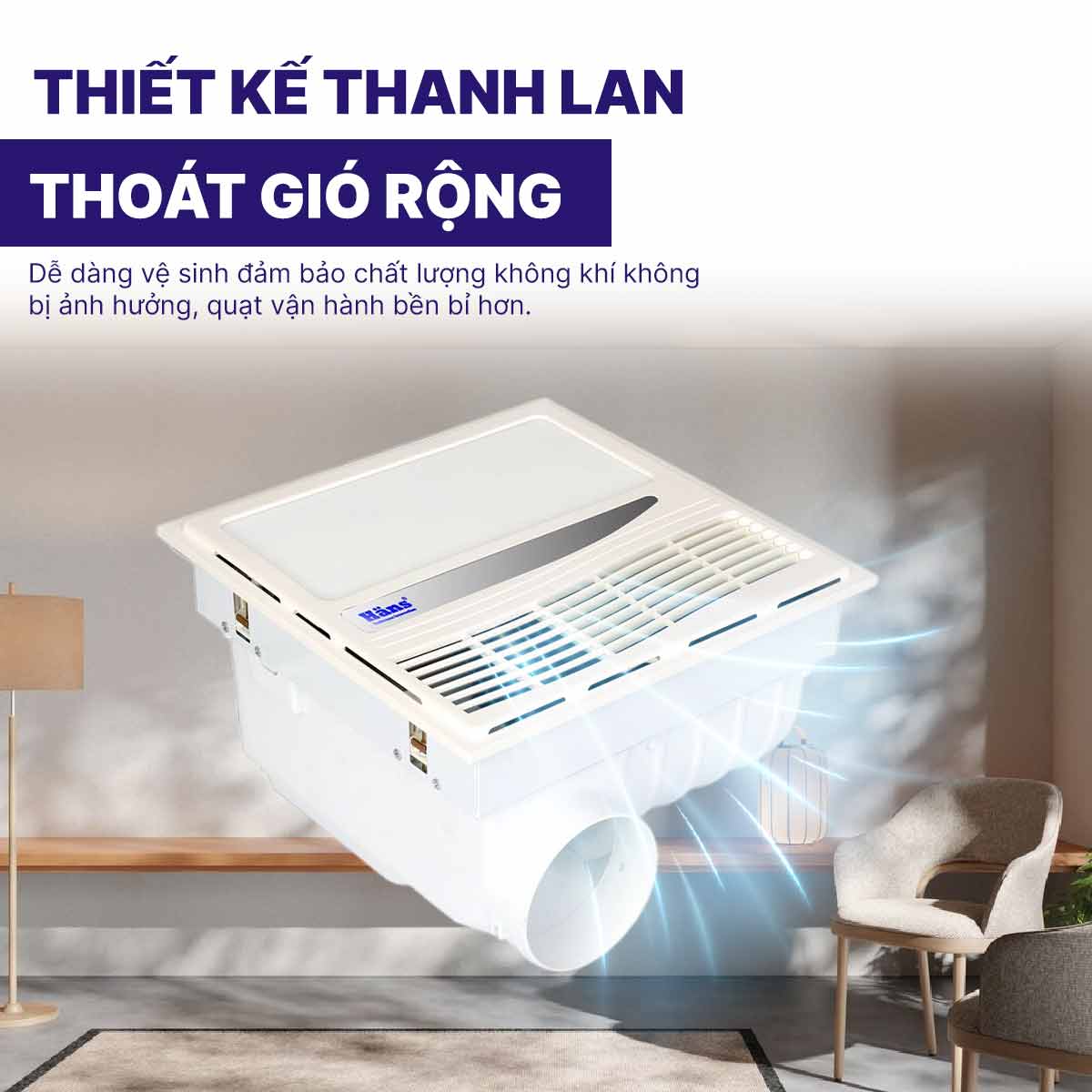 Hơn nữa Quạt sưởi âm trần Hans HA-R còn có thiết kế phần thanh lan khá rộng nên trong những trường hợp cần vệ sinh bạn chỉ cần sử dụng khăn mềm là đã có thể lau sạch bụi bẩn bám trên bề mặt, đảm bảo chất lượng không khí không bị ảnh hưởng, quạt vận hành bền bỉ hơn.