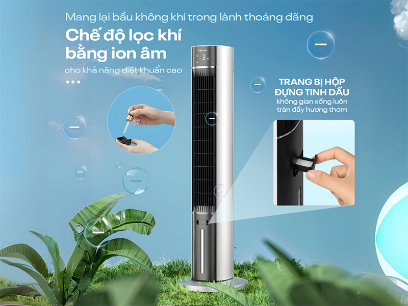 Một trong những điểm nổi bật của quạt tháp Fujihome AC-18LE là công nghệ lọc không khí Ionizer, giải phóng ion âm để loại bỏ vi khuẩn, bụi mịn và mùi hôi trong phòng. Tính năng này đặc biệt hữu ích đối với người có hệ hô hấp nhạy cảm, da dễ kích ứng hoặc sống trong môi trường ô nhiễm, bí khí. Không chỉ làm sạch không khí, chế độ Ionizer còn cân bằng độ ẩm, giảm tình trạng khô da thường gặp khi sử dụng điều hòa trong thời gian dài, mang lại bầu không khí trong lành và dễ chịu hơn cho cả gia đình.