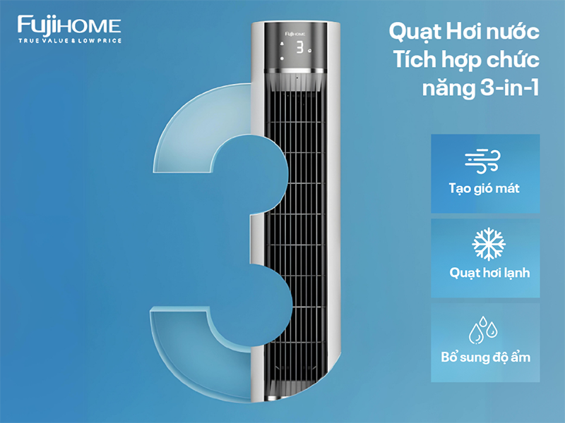 Với khả năng làm mát tức thì kết hợp cùng công nghệ lọc Ionizer, quạt tháp hơi nước tích hợp lọc không khí Fujihome AC-18LE không chỉ xua tan cái nóng mà còn loại bỏ bụi mịn và vi khuẩn, mang đến bầu không khí trong lành và dễ chịu. Sản phẩm sở hữu thiết kế nhỏ gọn, thanh lịch, được trang bị loạt tiện ích thông minh như điều khiển từ xa, hẹn giờ lên đến 12 tiếng và chế độ làm mát bằng hơi nước kết hợp đá khô, mang lại trải nghiệm sử dụng linh hoạt, tiết kiệm điện và thân thiện với sức khỏe.