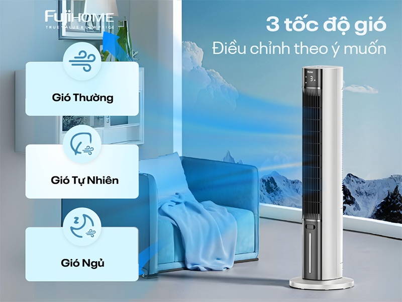 3 chế độ gió và 3 cấp độ tốc độ, linh hoạt theo nhu cầu sử dụng