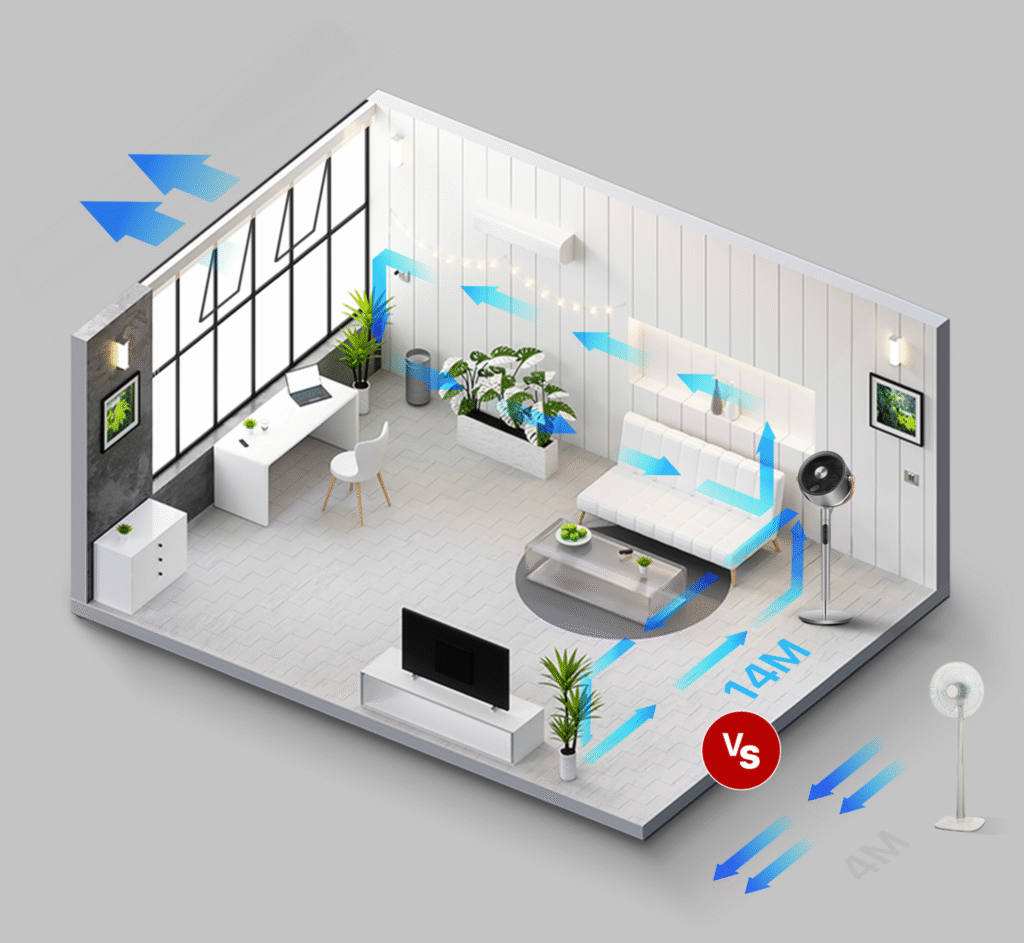 Tránh cảm giác ngột ngạt, bí bách – Cơ chế thổi gió xoay 360°