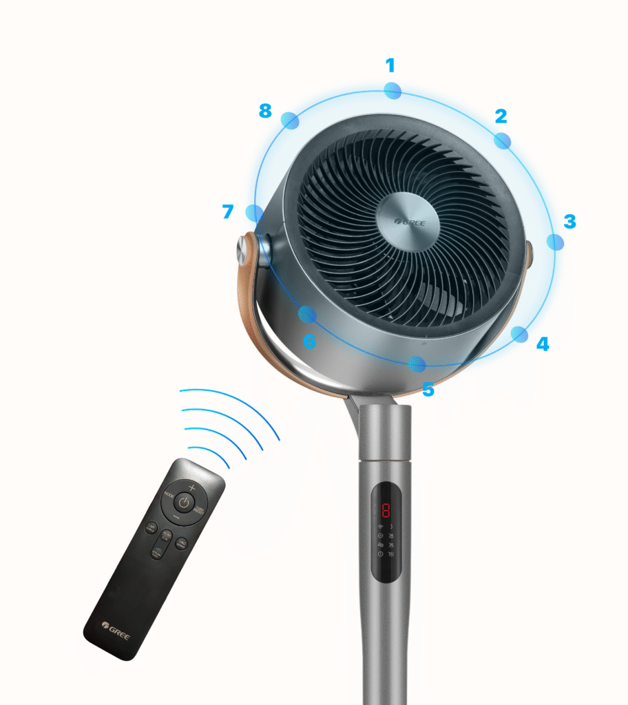 Quạt tuần hoàn Gree FXDZWK-2305Bg5 sở hữu đến 8 cấp độ thổi gió, người dùng dễ dàng điều chỉnh sức gió phù hợp với nhu cầu từ gió nhẹ – gió trung bình – gió mạnh