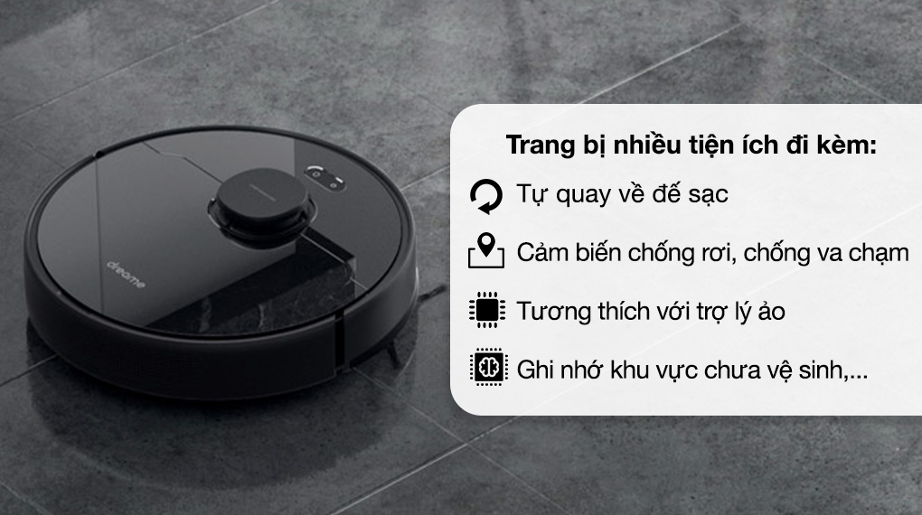 – Tính năng tự quay về trạm sạc khi hết pin.
