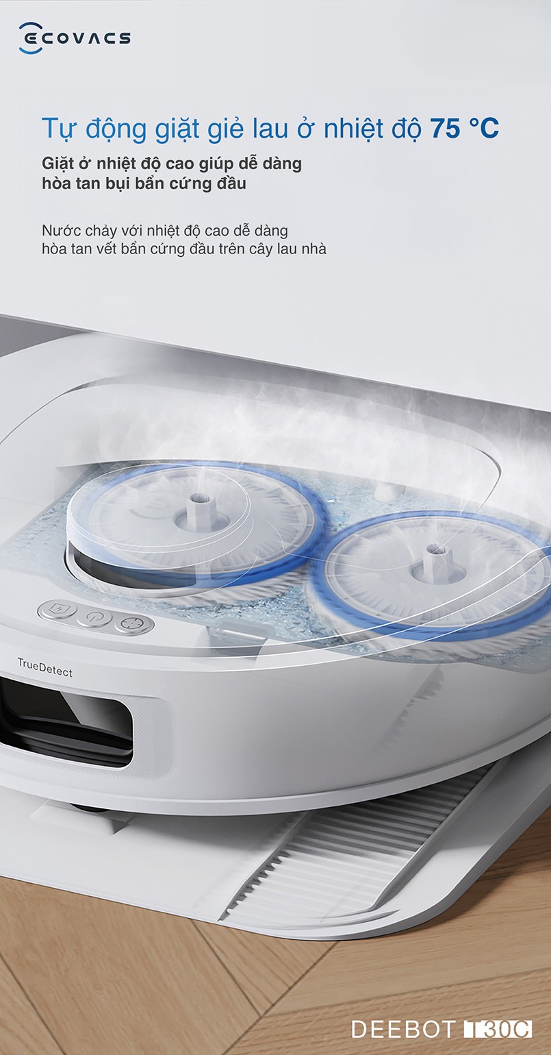 Tự động sấy vải lau ở nhiệt độ 45°C: Nhờ cái nhiệt độ sấy khá cao, vải lau của Ecovacs Deebot T30C sẽ mau chóng được khô ráo, và sẵn sàng cho lần làm sạch tiếp theo.