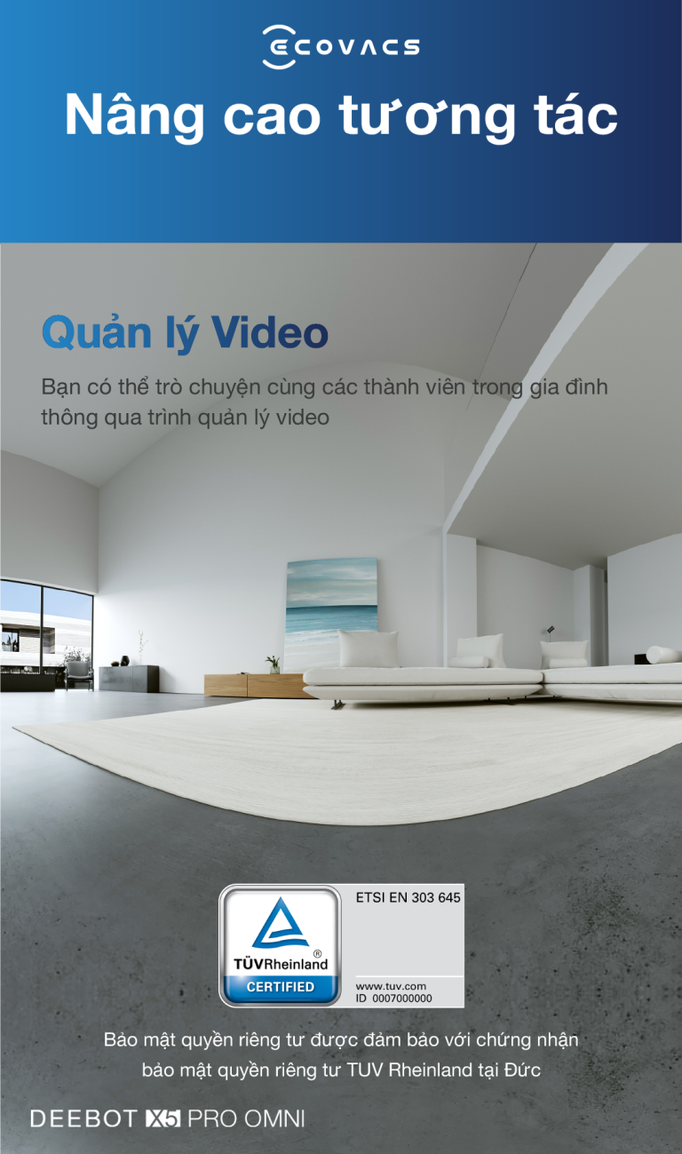 Trình quản lý video thời gian thực của DEEBOT X5 PRO OMNI cho phép bạn giữ liên lạc với các thành viên trong gia đình ở nhà và giám sát ngôi nhà của bạn mọi lúc.