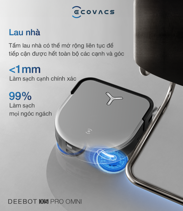 Robot Ecovacs X5 Pro OMNI nổi bật với cảm biến làm sạch TruEdge, đem lại khả năng làm sạch mọi ngóc ngách với khoảng cách tối thiếu 1mm, tăng độ bao phủ lên đến 98%. Ngoài ra, robot có thể linh hoạt thay đổi để làm sạch với độ chính xác cao, đảm bảo “cánh tay vươn dài” luôn ở sát mép, đánh bay mọi vết bẩn trong các khu vực phức tạp.