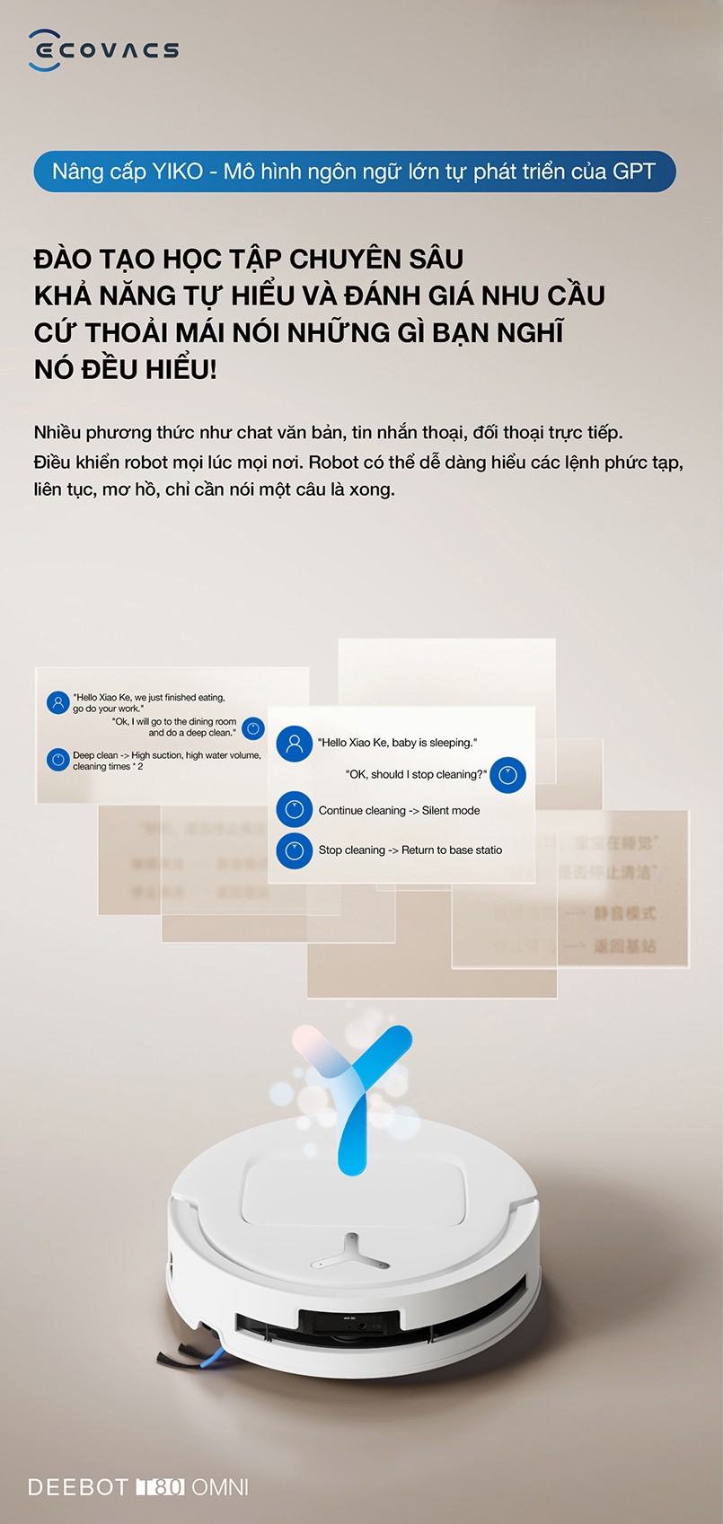Công nghệ tự động điều chỉnh nhiệt độ 2.0: Đây là một công nghệ mới, chỉ xuất hiện trên Ecovacs T80 Omni. Chức năng này được hiểu đơn giản là robot tự động điều chỉnh nhiệt độ giặt tuỳ theo loại phòng và mức độ vết bẩn, và cũng tuỳ chỉnh các vòng giặt sao cho phù hợp. Công nghệ này đảm bảo cho con lăn được làm sạch tối ưu, vừa giúp tiết kiệm thời gian, năng lượng vừa đảm bảo kết quả làm sạch hoàn hảo.