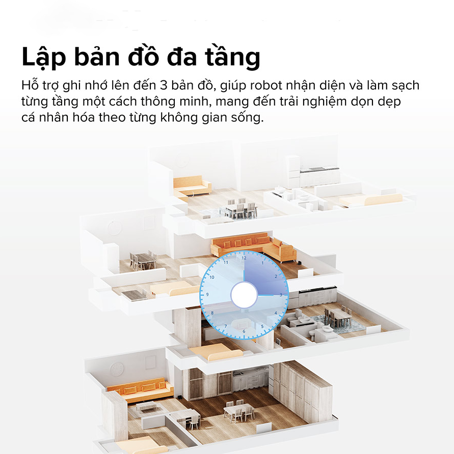 Với khả năng lưu trữ lên đến 3 bản đồ khác nhau, Roborock Q10 PF+ đặc biệt phù hợp cho nhà nhiều tầng hoặc không gian có cách bố trí khác biệt. Robot sẽ tự động nhận diện từng tầng, áp dụng bản đồ phù hợp và triển khai kế hoạch làm sạch hiệu quả mà không cần cài đặt lại. Điều này mang đến trải nghiệm cá nhân hóa, tối ưu hóa khả năng làm sạch cho từng khu vực cụ thể trong ngôi nhà bạn.