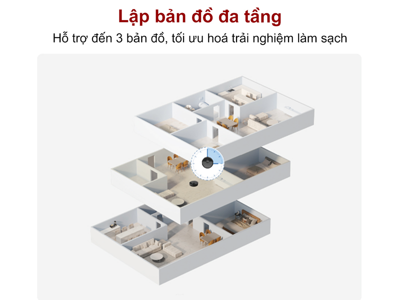 Roborock Q7TF có thể ghi nhớ bản đồ của 3 tầng nhà. Khi được chuyển đến một tầng mới, robot sẽ tự động nhận diện không gian và áp dụng bản đồ đã lưu trước đó, bắt đầu làm sạch ngay lập tức mà không cần cài đặt lại.