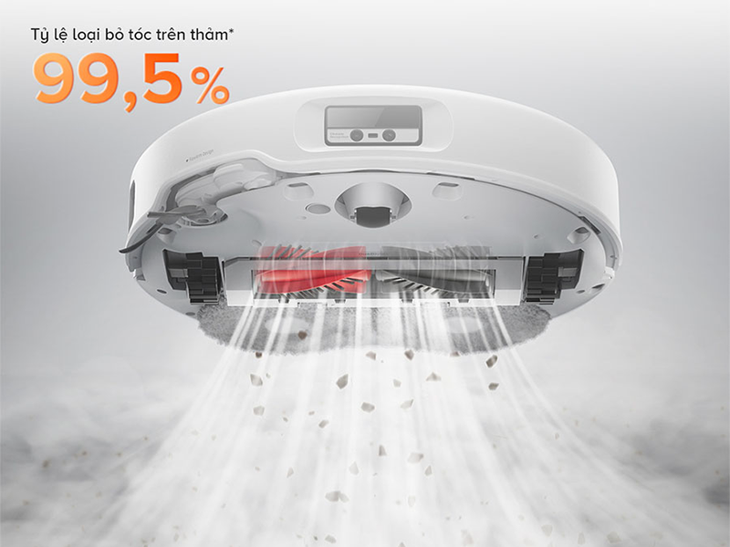Robot hút bụi lau nhà Roborock Q Revo Edge 5V1 được trang bị hệ thống chổi chống rối kép đột phá, mang lại hiệu quả làm sạch mượt mà và liên tục, đặc biệt phù hợp với những nhà có thú cưng hoặc người có tóc dài. Cấu tạo hệ thống gồm chổi chính DuoDivide và chổi bên FlexiArm, dễ dàng xử lý tóc rụng, lông thú mà không gây tắc nghẽn hay giảm hiệu suất.