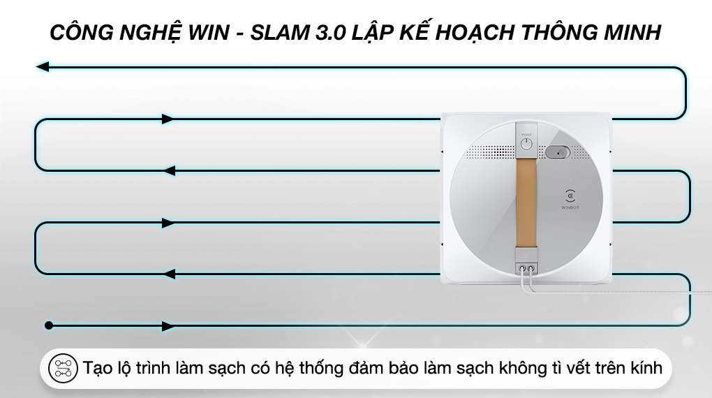 – Thuật toán cải tiến WIN – SLAM 3.0 có thể lên một lộ trình di chuyển chính xác, giúp làm sạch toàn diện, đảm bảo mặt kính sạch không tì vết. Đồng thời robot sẽ quay trở lại vị trí xuất phát để dễ dàng gỡ xuống sau khi hết phiên làm việc.