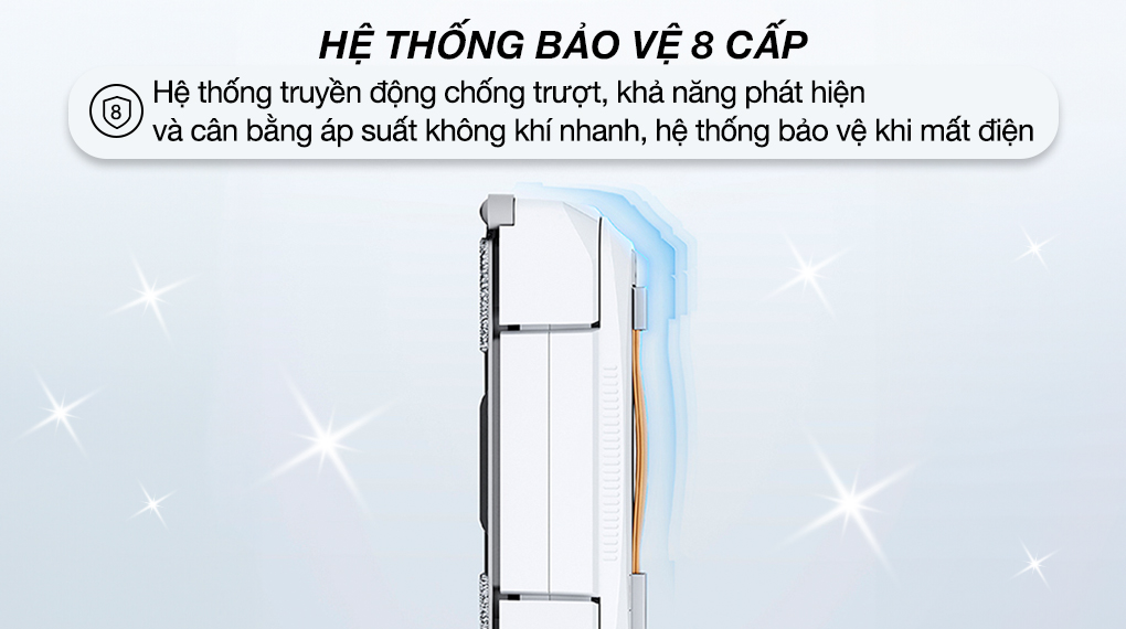 – Công suất hoạt động 96W cùng lực hút mạnh mẽ lên đến 2800 Pa, hệ thống bảo vệ 8 cấp giúp máy bám chắc vào kính, đảm bảo an toàn khi sử dụng, xóa sạch các vết bẩn cứng đầu một cách nhanh chóng.