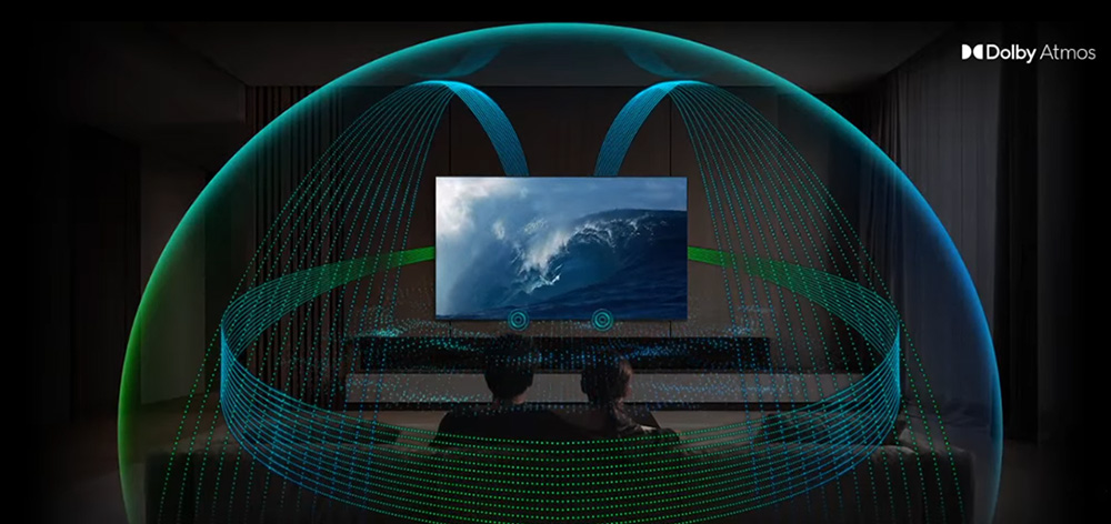 Tivi Samsung Neo QLED 100 inch QA100QN80F không chỉ mạnh về hình ảnh mà còn ghi điểm ở hệ thống âm thanh nhờ hỗ trợ Dolby Atmos. Âm thanh đa chiều được tái tạo chân thật, mang đến cảm giác bao trùm không gian, khiến người xem như đang đắm mình trong chính khung cảnh phim ảnh hay chương trình đang phát.