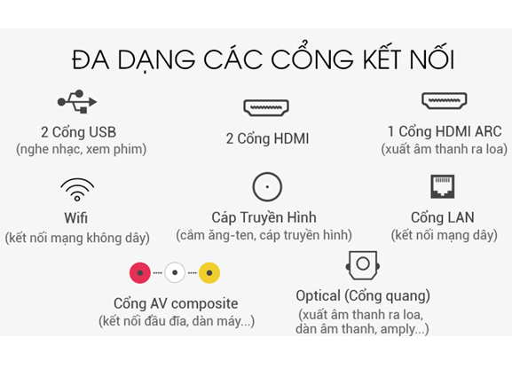 Các cổng kết nối HDMI, AV, Optical, USB,… đều được trang bị đầy đủ giúp cho việc kết nối giờ đây trở nên dễ dàng hơn rất nhiều.