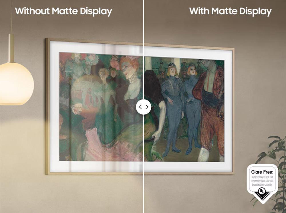 Màn hình QLED 4K của tivi khung tranh Samsung QA55LS03F mang đến hình ảnh sắc nét với hơn 8 triệu điểm ảnh và tần số quét 120Hz. Không chỉ vậy, màn hình còn được trang bị công nghệ Matte Display chống phản sáng, giúp người dùng có thể thưởng thức nội dung giải trí một cách rõ ràng mà không bị chói, kể cả trong môi trường sáng mạnh.