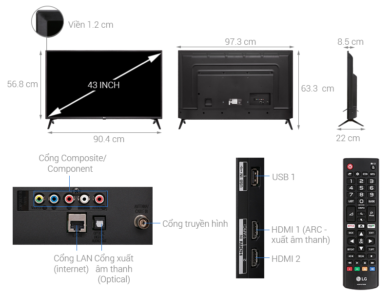 Tivi LG 43 inch phù hợp với các không gian vừa và nhỏ như phòng khách, phòng ngủ,…