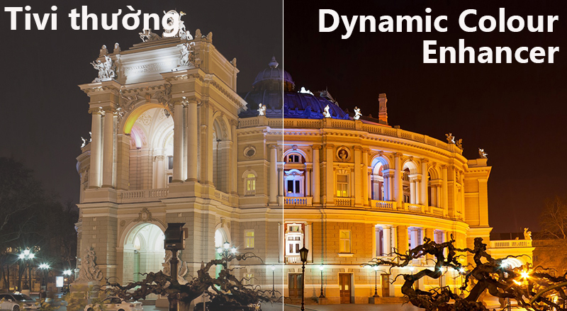 Công nghệ Dynamic Colour Enhancer trên tivi sẽ tăng cường độ tương phản cho hình ảnh giúp hình ảnh sáng hơn, không bị mờ nhòe.