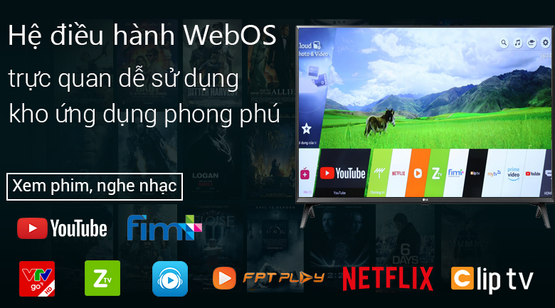 Tivi LG Full HD sở hữu đầy đủ các ứng dụng giải trí trực tuyến phổ biến: YouTube, trình duyệt web, Spotify, FPT Play,… cùng nhiều tính năng hấp dẫn khác.