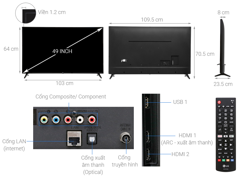 Kích thước màn hình 49 inch vừa phải phù hợp với nhiều không gian nội thất khác nhau như: phòng khách, phòng họp,…