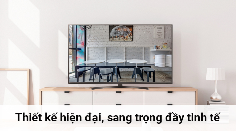 Smart Tivi LG 4K 49 inch 49SM8100PTA có thiết kế chân trụ mang kiểu dáng bán nguyệt độc đáo, thanh lịch và tinh tế nhưng vẫn đảm bảo khả năng trụ vững cho sản phẩm khi đặt ở bất kì mặt phẳng nào.