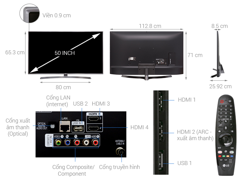Màn hình 50 inch sẽ giúp smart tivi này phù hợp với những không gian phòng khách, phòng làm việc, phòng họp,…
