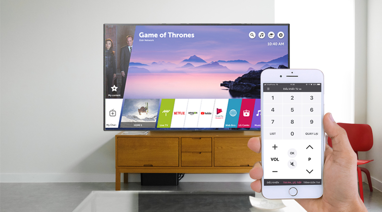 • Hỗ trợ chiếu màn hình điện thoại lên tivi và điều khiển tivi bằng điện thoại qua ứng dụng LG TV Plus.