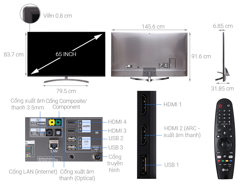 Smart Tivi LG 4K 65 inch 65SK8000PTA gây ấn tượng với thiết kế đơn giản, hài hòa cùng chân đế bán nguyệt vững chắc góp phần tôn lên vẻ sang trọng cho ngôi nhà bạn.