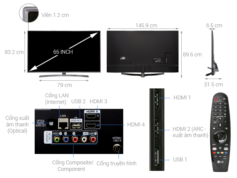 Màn hình tivi 65 inch to lớn thích hợp để đặt ở phòng khách, phòng họp,… hoặc dành cho những bạn thích xem trải nghiệm màn hình to.