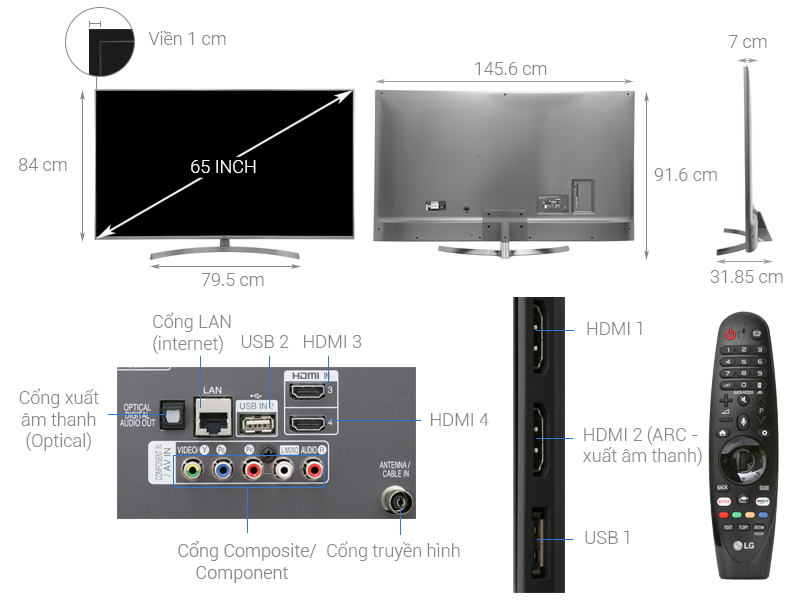 Kích thước màn hình tivi 65 inch trên tổng thể liền mạch, thích hợp bố trí vào không gian nội thất rộng như phòng khách, phòng họp,… để nổi bật lên phong cách sống hiện đại của bạn.