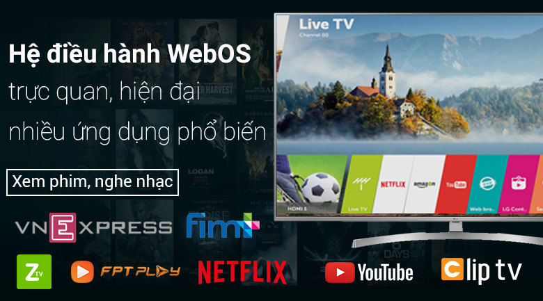 Tivi LG 4K này sỡ hữu nhiều ứng dụng phổ biến như Trình duyệt web, YouTube, Netflix, Zing TV, VnExpress, Film+,… trên giao diện sử dụng trực quan, mang lại trải nghiệm dùng hiện đại. Bạn sẽ có những giây phút thư giãn, giải trí thoải mái cùng bạn bè, người thân.