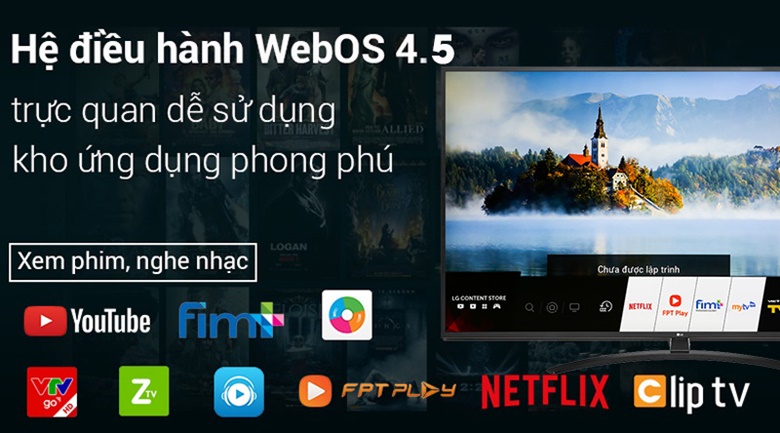 Các ứng dụng sẵn có: Youtube, Netflix, Trình duyệt web, LG Content Store