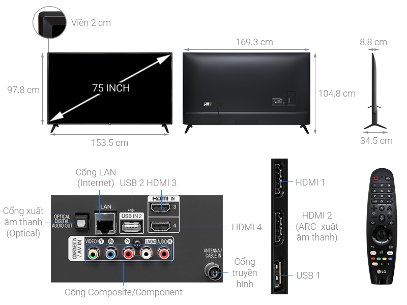 Kích thước khủng lên đến 75 inch chắc chắn sẽ biến chiếc tivi LG 75 inch này trở thành rạp chiếu phim mini ngay trong căn nhà của bạn.