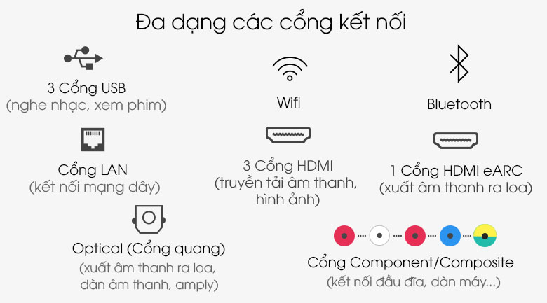 Hỗ trợ đa dạng các cổng kết nối có dây và không dây