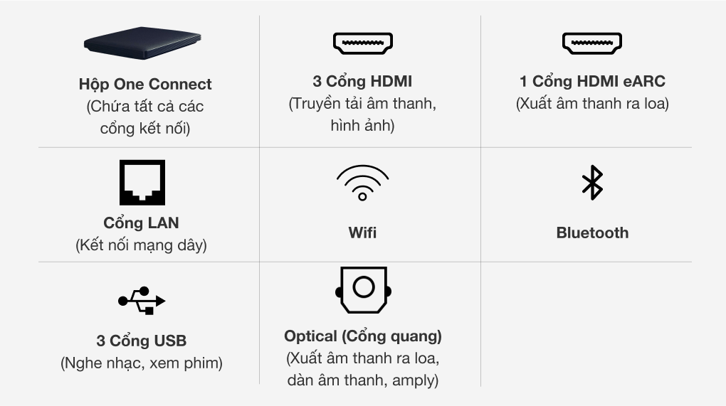 Công Nghệ Q-Symphony kết hợp loa tivi và loa thanh, đồng bộ để tạo nên hiệu ứng âm vòm tốt hơn, cho bạn đắm chìm hoàn toàn trong các sắc âm ấn tượng.
