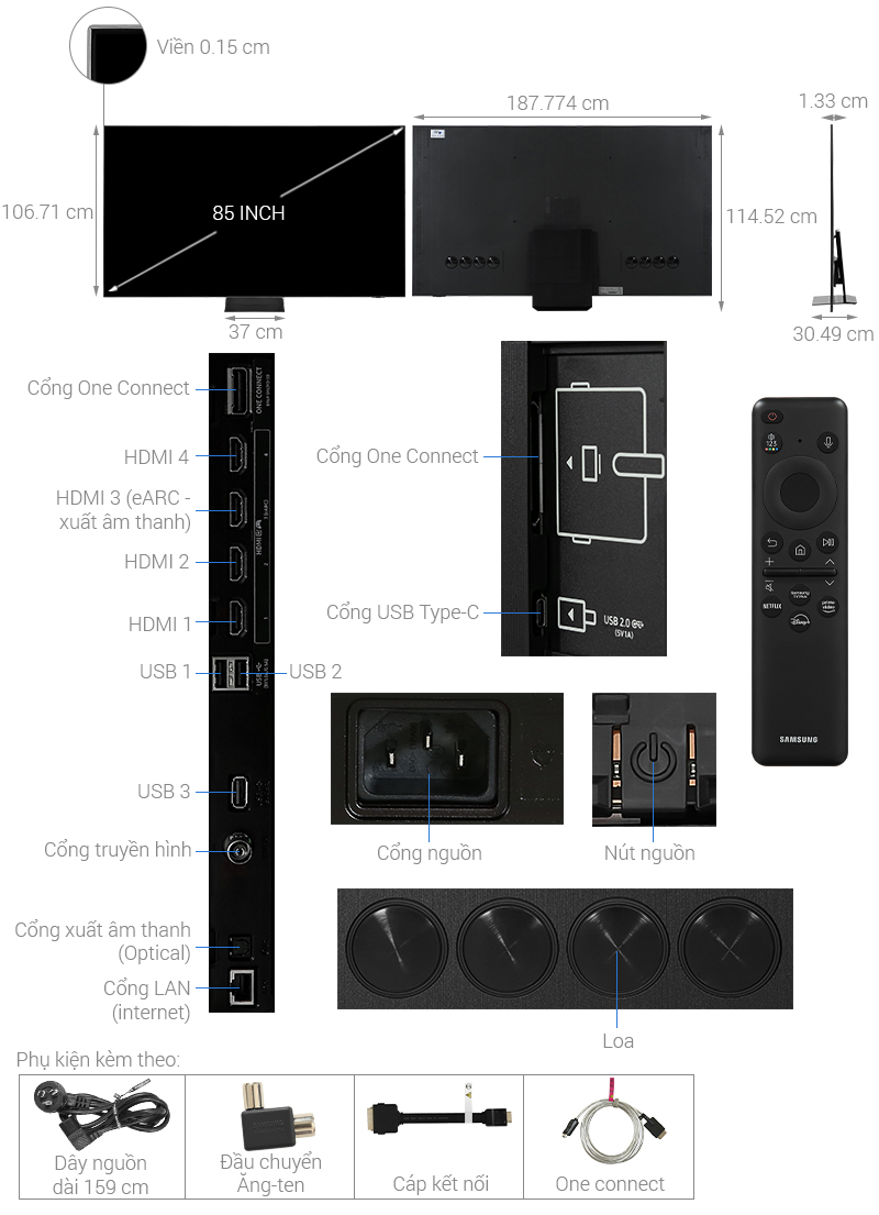 – Màn hình 85 inch, lấp đầy căn phòng khách, phòng ngủ, showroom, phòng hội nghị rộng rãi của bạn.
