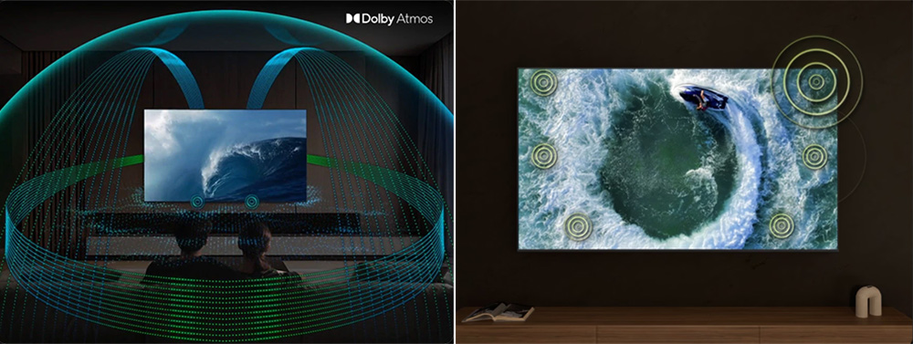 Âm thanh chuyển động theo hành động trên màn hình nên mang đến cho bạn trải nghiệm nghe cực kỳ đặc sắc, từ tiếng xe lao vút trong phim hành động đến tiếng cổ vũ trong trận bóng đá. Hệ thống loa 60W mạnh mẽ của thiết bị cũng đảm bảo âm thanh rõ ràng, chi tiết, giúp bạn đắm chìm trong từng khoảnh khắc mà không cần thiết bị âm thanh bổ sung.