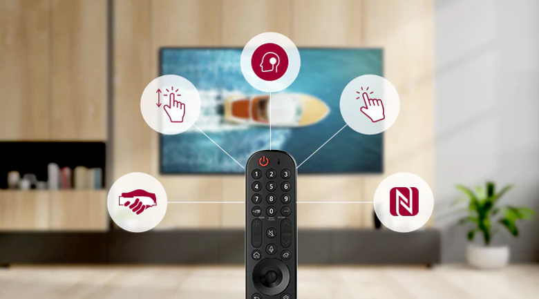 Chiếc remote gọn nhẹ có tích hợp micro, khả năng nhận diện giọng nói LG Voice Regconition cho phép người dùng trực tiếp sử dụng giọng nói của mình để điều chỉnh các chức năng, lựa chọn ứng dụng trải nghiệm trên Smart tivi.