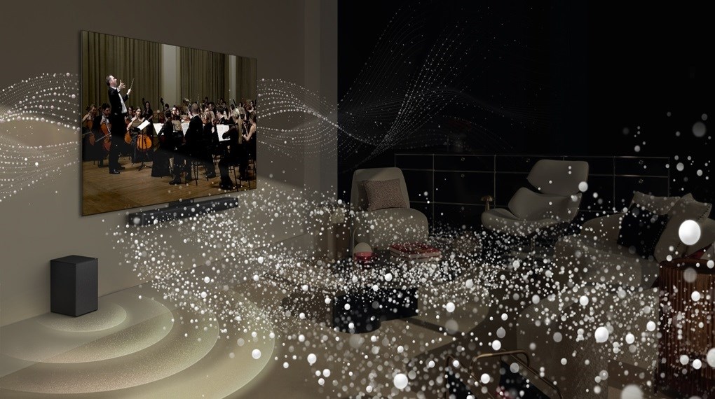 – Công nghệ α9 AI Sound Pro tự động phân tích giọng nói, hiệu ứng, tần số của âm thanh có trong các nội dung được phát trên tivi nhằm tối ưu chất lượng phù hợp nhất với thể loại đó.
